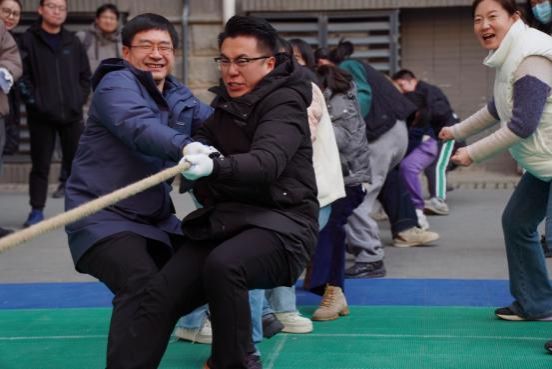 运动会在一场拔河比赛拉开帷幕。赛场上,公司师生充分发挥团队合作能力,齐心协力、协同“作战”、勇争第一。观赛同事在旁给参赛选手们加油助威,呐喊声和欢声笑语此起彼伏,大家沈浸在一片欢乐和谐的氛围中。