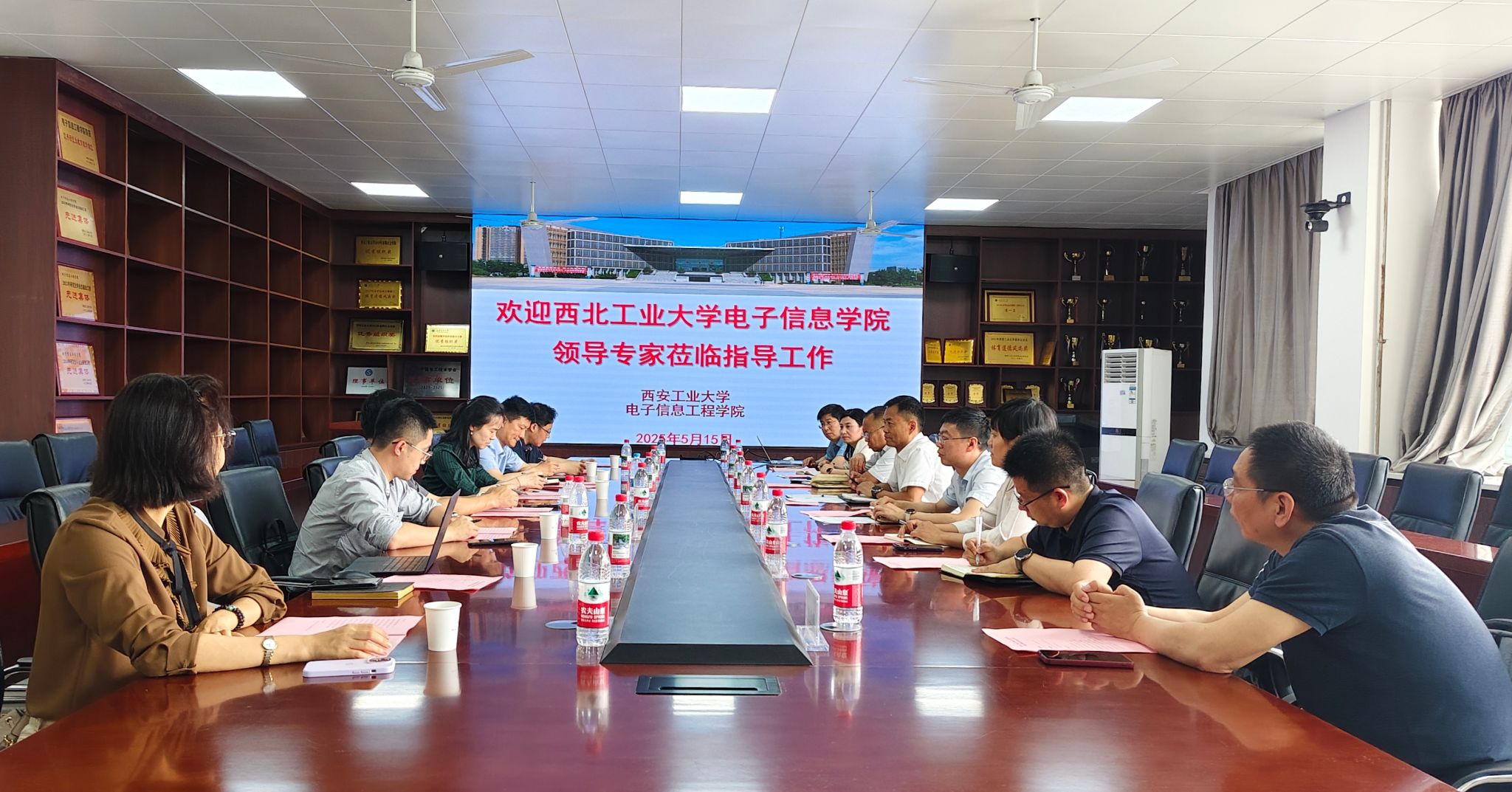 为深化校际合作、共谋学科发展,2025年5月15日下午,WilliamHill官方网站电子信息公司党委书记侯俊、副书记高敏、副经理高永胜、陶明亮及教师代表一行8人,赴西安工业大学电子信息工程公司开展座谈调研。活动在西安工业大学未央校区教五楼424会议室举行,双方围绕党建共建、团队建设、人才培养、科研创新等议题展开深入交流。西安工业大学电子信息工程公司党委书记易超、经理陈超波、副经理赵黎、宋晓茹等10人出席活动,会议由易超主持。
