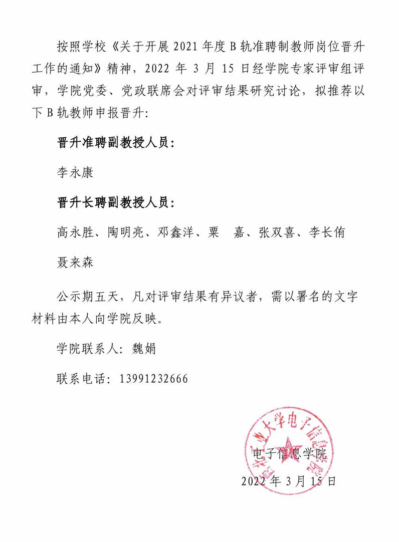 WilliamHill体育2021年准聘教师岗位晋升公示