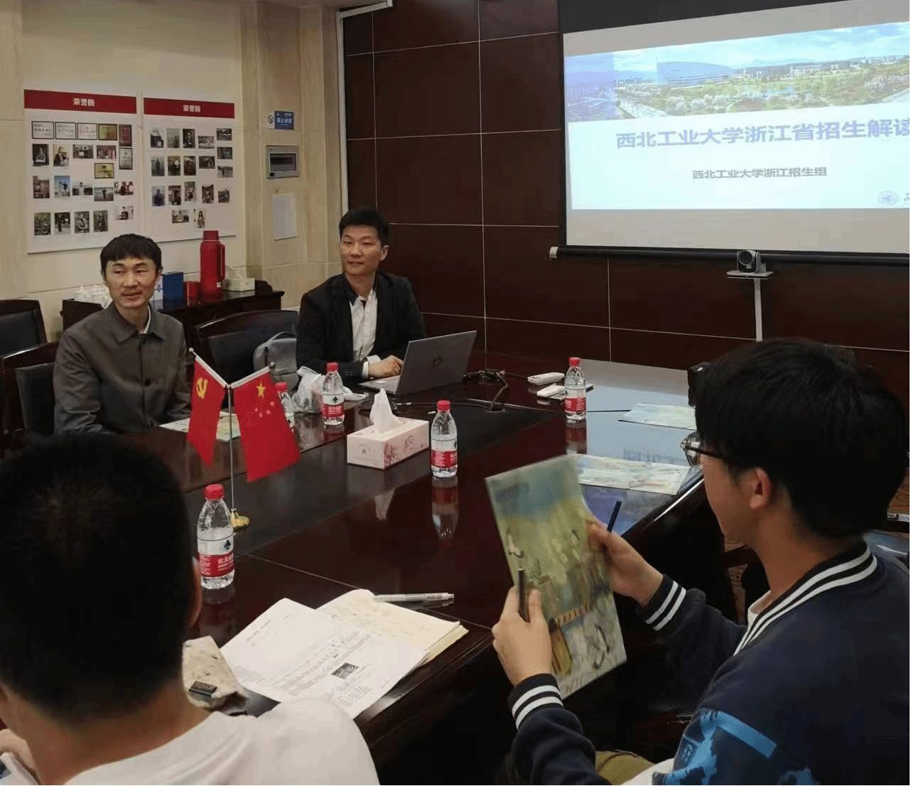 效实中学党委副书记董敏达、主任戴三红接待了公司一行,双方就各自公司概况、生源输送情况、后期合作沟通等事宜进行了交流。随后,侯俊和高永胜分别代表公司向效实中学赠送运-20飞机模型和仿蝠鲼柔体潜水器3D打印模型等礼物。