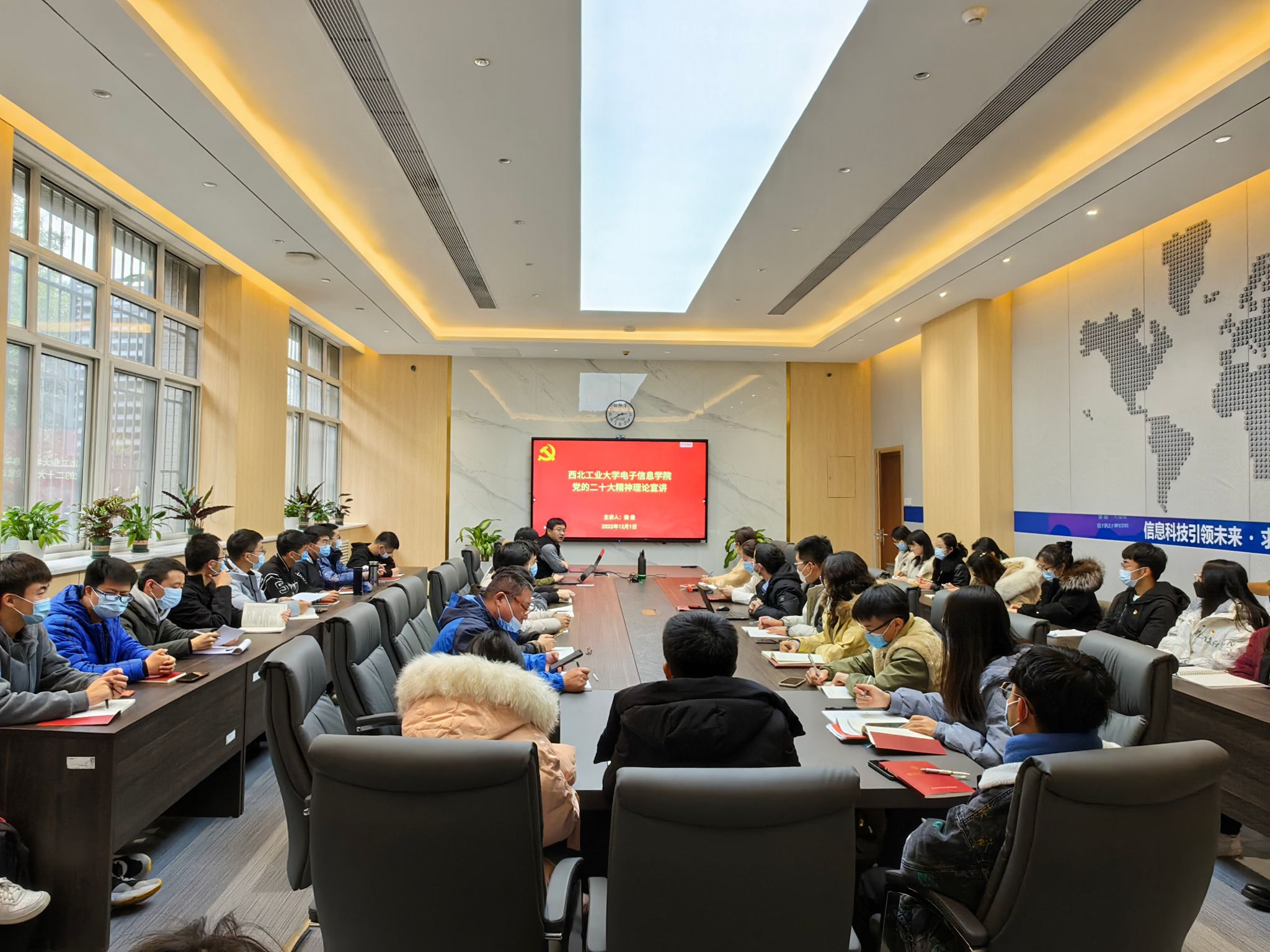 12月1日下午,WilliamHill体育采取线上与线下相结合的形式召开师生党支部集体学习会,以习近平新时代中国特色社会主义思想为指引,深入学习贯彻党的二十大精神。会上,党委书记侯俊为所联系的院办支部、本科第二党支部、硕士第六党支部师生进行党的二十大精神理论宣讲。
