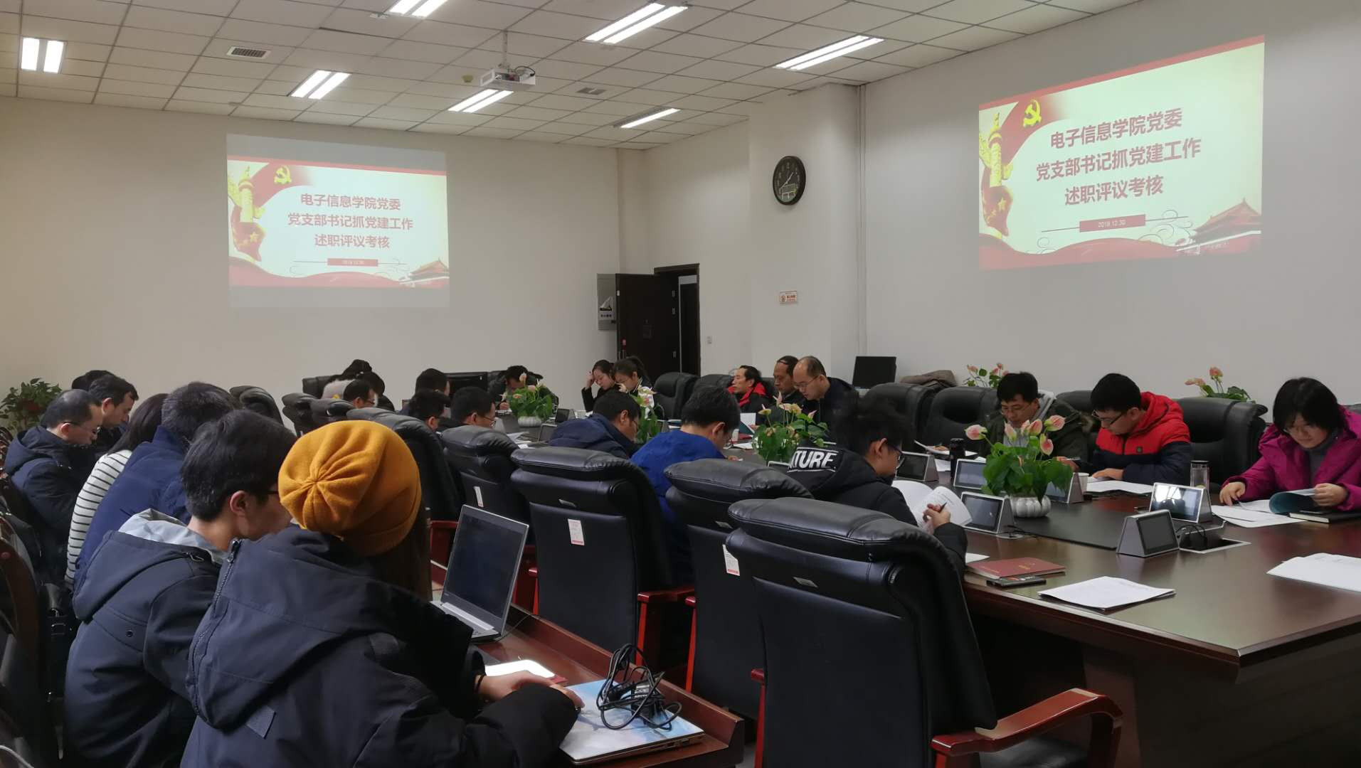 为深入学习贯彻习近平新时代中国特色社会主义思想和党的十九大精神,全面落实管党治党政治责任,进一步推动全面从严治党向基层延伸,切实提高党建工作质量。根据公司《关于开展2019年度党支部书记抓党建工作述职评议考核的通知》文件精神,12月30日,电子信息公司党委在119会议室召开了2019年党支部书记抓党建工作述职评议考核大会。评审组由公司党委委员、教授代表、党外代表人士、青年教师代表等组成,全体教工党支部书记参加了会议,会议由公司党委书记李春林主持。
