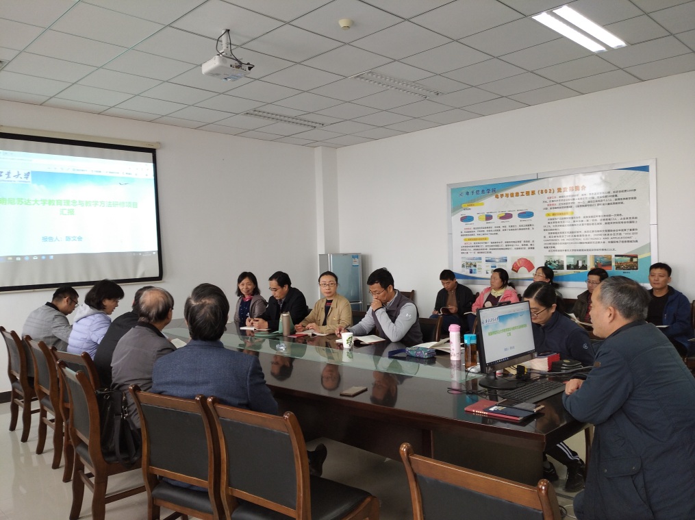 陈文会老师为大家分享了赴明尼苏达大学参加教学培训的经历,从课程设计与教学形式探究等方面为大家提供了自己的学习体会,并在如何弘扬传统文化,把思想政治工作贯穿公司产品全过程等方面提供了自己的感想和思考。万帅老师从自己上课的亲身实践出发,从具体专业课内容的角度,为大家提供了课程思政的生动案例,拓展实践教学体系,探索发挥专业课程的价值引领作用。