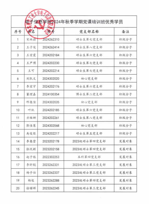 2. 优秀学员名单