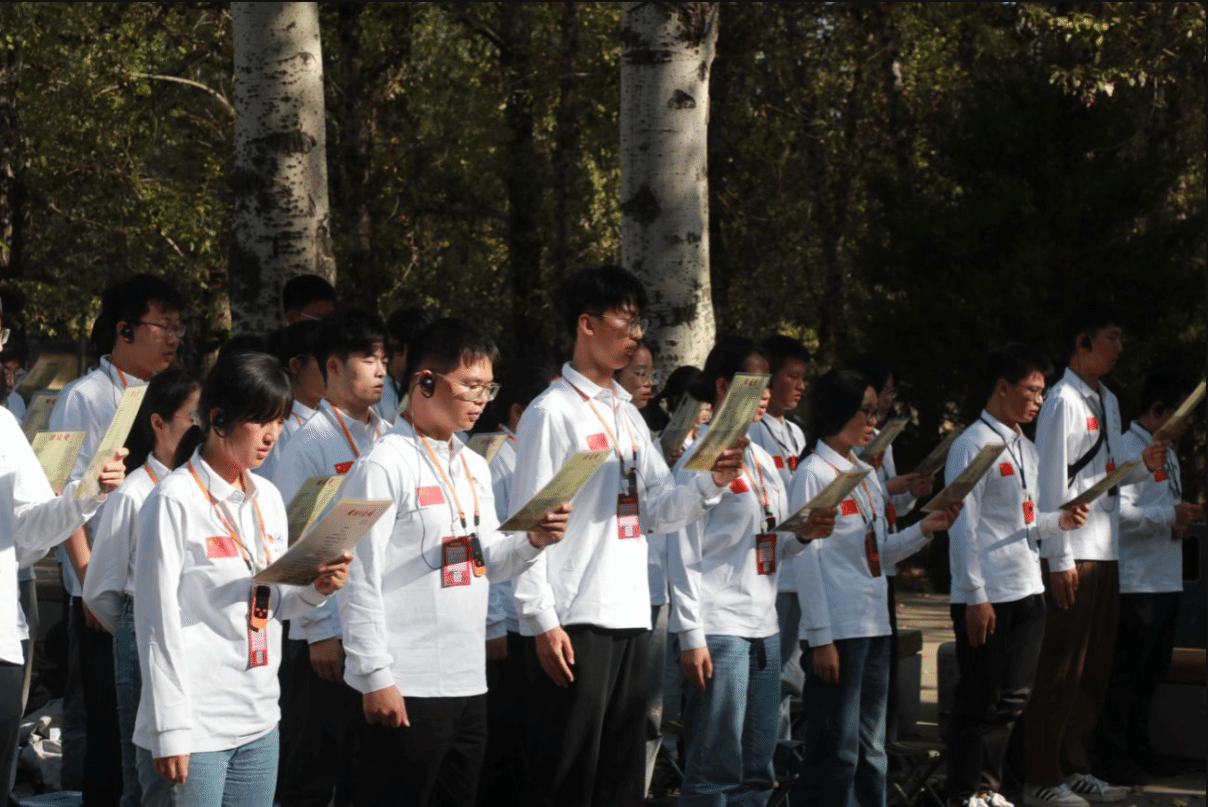 随后,一场庄重的《为人民服务》经典诵读活动如期举行。全体成员身着统一服装,神情肃穆,齐声诵读这篇不朽著作。“人固有一死,或重于泰山,或轻于鸿毛……” 激昂有力的声音回荡在旧址上空,不仅是对经典的致敬,更是对 “为人民服务” 宗旨的深刻重温,让每一位参与者在诵读中进一步坚定了以人民为中心的价值追求。